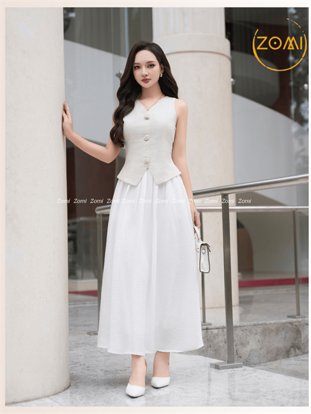 Set áo gile tay ngắn và chân váy