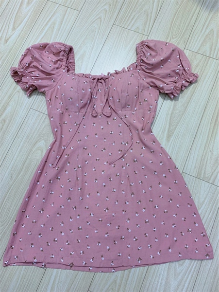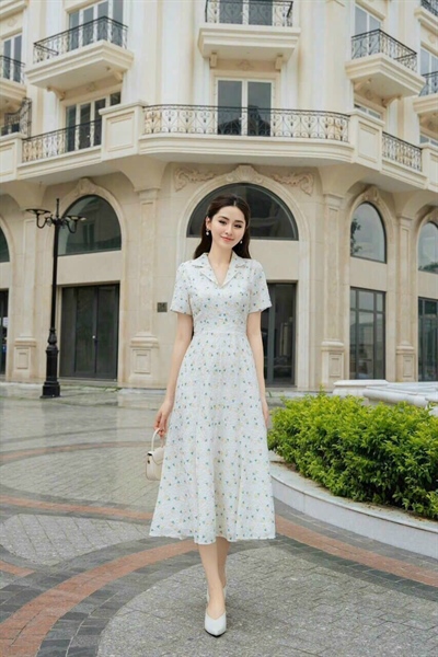Đầm sơ mi hoa voan ép XANH BIỂN